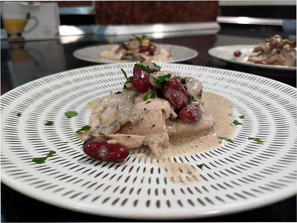 Receta de Lomo de cerdo con salsa de champiñones y mostaza